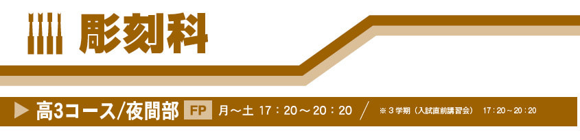 制作時間が圧倒的に少ない現役生が、当学院では高い合格率を維持しています。それは、「実技と学科ではどちらを重視すれば?」 「□□大学の入試のポイントは?」 「今、やらなければいけないことは何?」「学校での時間の使い方は?」など、 入試対策を個々に合わせて考え、長所を大きく伸ばし、短所を個性に変えていく当学院彫刻科ならではの『指導マジック』です。