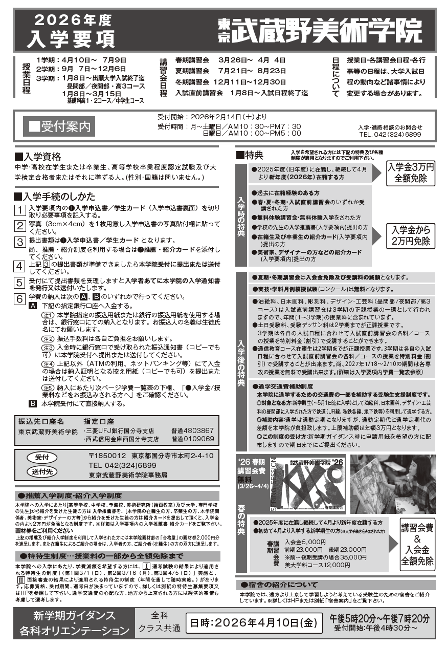 2026年度 入学要項 / 特典 / 各種制度